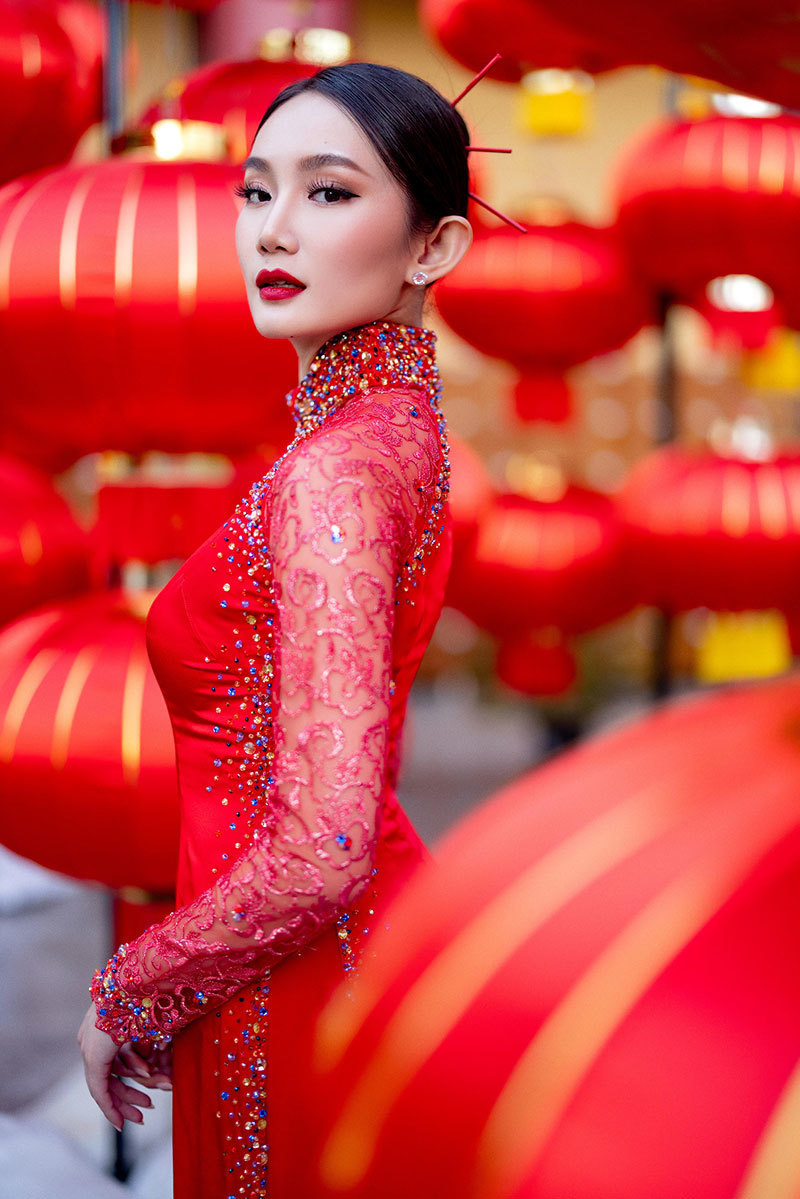 | Hoàng Mỹ An đằm thắm với áo dài xuân |
