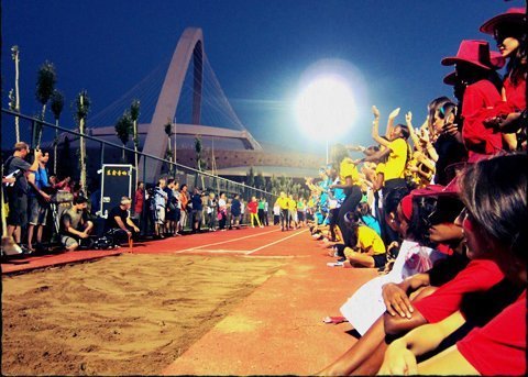 | Các thí sinh cổ vũ cho nhóm thi nhảy xa |