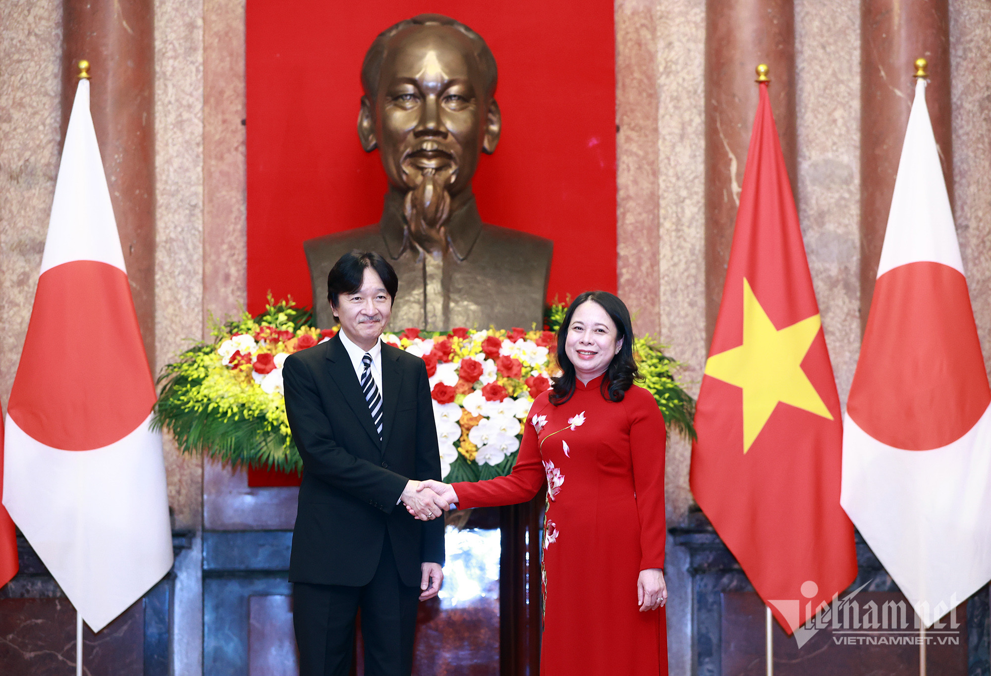 Sáng 21/9, tại Phủ Chủ tịch, Phó Chủ tịch nước Võ Thị Ánh Xuân chủ trì lễ đón và hội đàm với Hoàng Thái tử Nhật Bản Fumihito Akishino và Công nương Kawashima Kiko, đang có chuyến thăm Việt Nam 5 ngày.