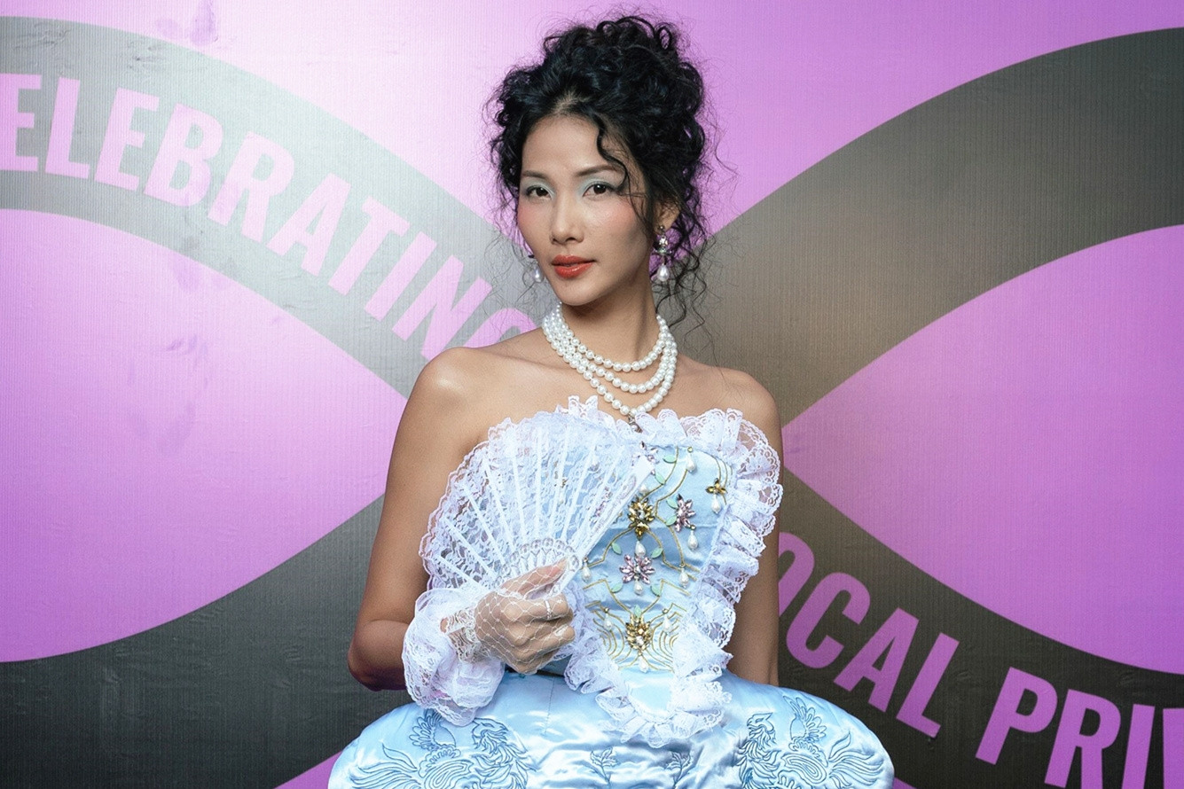 Á hậu Hoàng Thuỳ, Nguyễn Quỳnh Anh, "anh trai" Quang Hùng MasterD, vợ chồng Chúng Huyền Thanh - Jay Quân, ca sĩ Dickson Nguyễn, MC, hoa hậu Đỗ Nhật Hà, nhóm nhạc Hàn Quốc HoonDoo cùng hơn 100 khách mời vừa tham gia sự kiện "Elengant Lady" tại TPHCM. Á hậu Quỳnh Anh búi tóc cao, nền nã trong chiếc đầm đuôi cá cúp ngực, phối với loạt phụ kiện nổi bật có chung kiểu dáng.