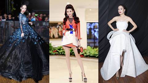 Huyền My diện nguyên cây hàng hiệu đắt giá làm giám khảo một cuộc thi sắc đẹp. Angela Phương Trinh kiêu kỳ trong bộ đầm đen đồ sộ tại một sự kiện ở TPHCM.