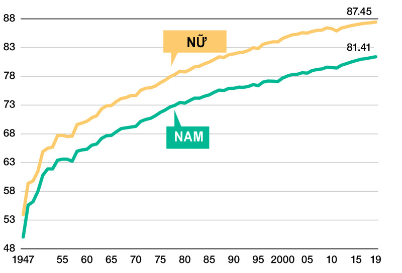 Theo số liệu của Bộ Y tế, Lao động và Phúc lợi Nhật Bản, tuổi thọ trung bình của đàn ông và phụ nữ nước này lần lượt là 81 và 87 tuổi.