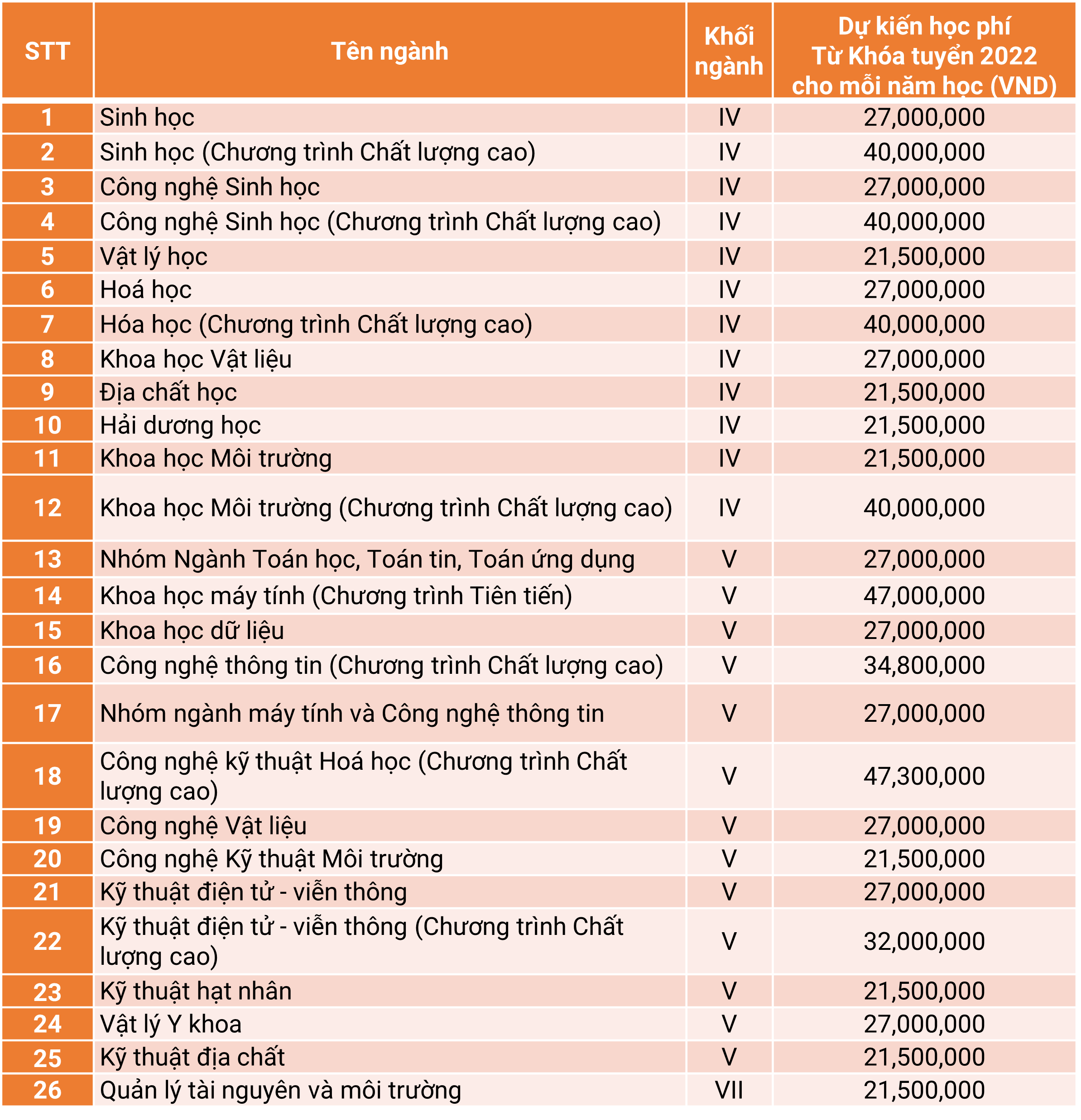 Học phí năm 2022 các chương trình do Trường ĐH Quốc tế cấp bằng là 50 triệu/năm.