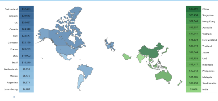 Cụ thể, lệ phí tại Trung Quốc đã tăng từ 25.820 USD năm 2017 lên 33.591 USD năm 2018; tại Singapore tăng từ 23.198 USD lên 25.758 USD; tại Hồng Kông, giá đã tăng từ 18.465 USD lên 22.046 USD…