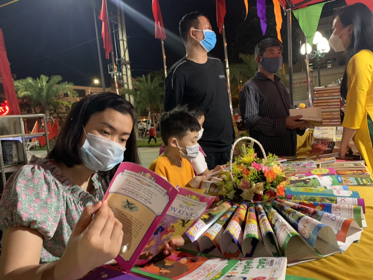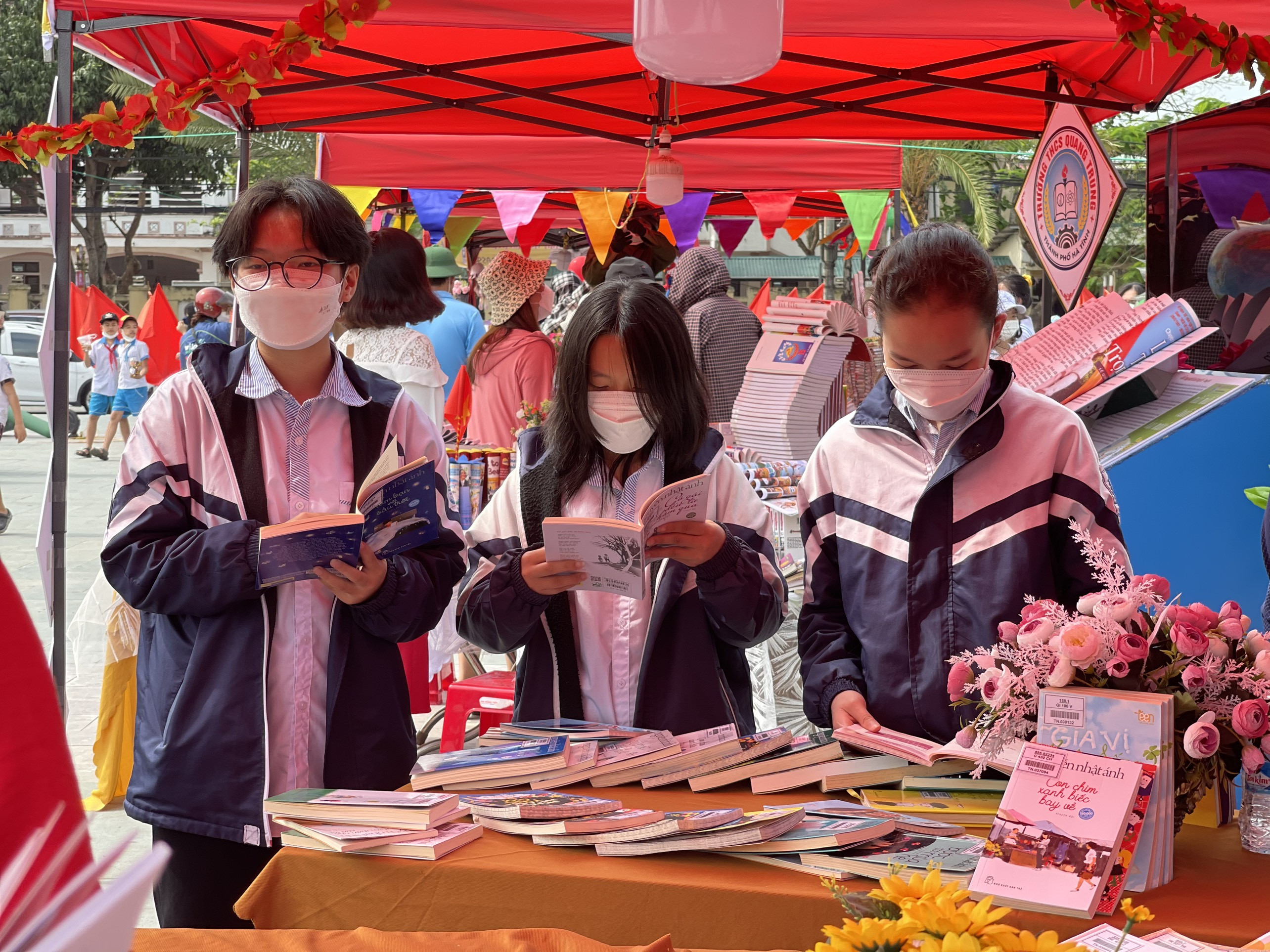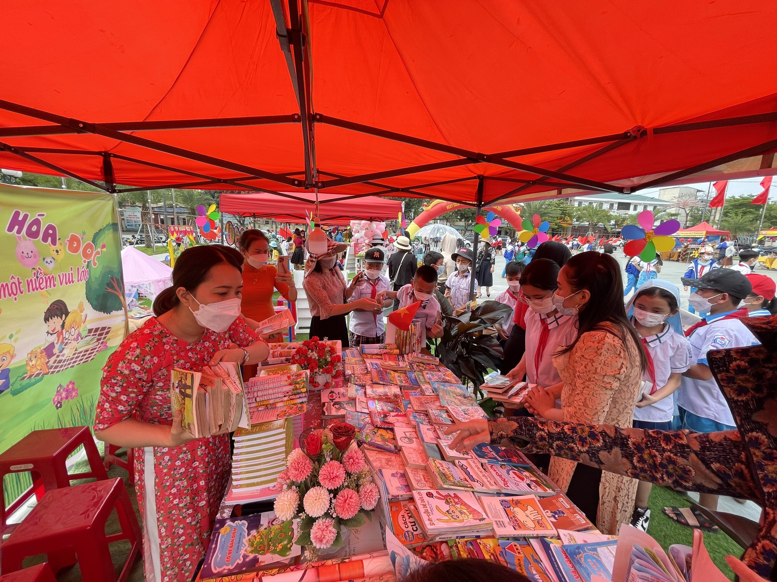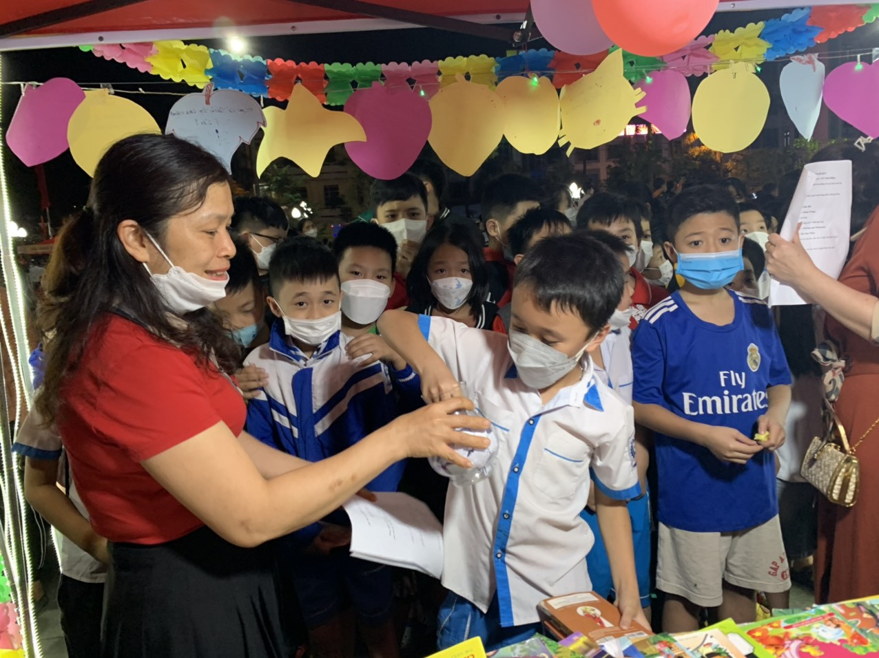 Hoạt động đã thu hút hàng trăm người tham gia và học sinh hào hứng kể chuyện, đọc sách tại không gian trưng bày.