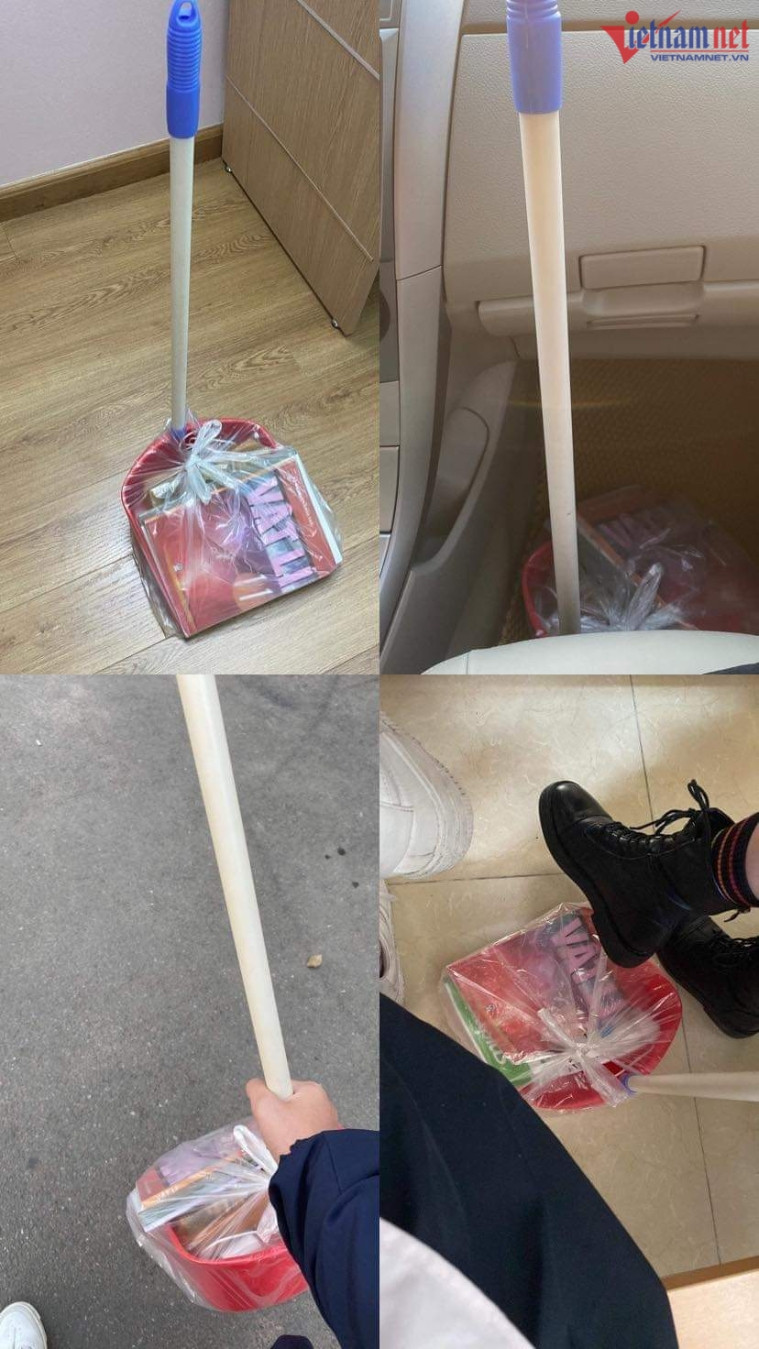 Ngày 8/4, các học sinh Trường THPT Chuyên Ngoại ngữ đã mang nhiều "cặp sách" rất độc, lạ đến trường: xô, chậu, làn, bao tải, móc quần áo, giỏ nhựa, thùng các tông, hộp nhựa, giá treo, thậm chí là cả hót rác... để đựng sách vở.