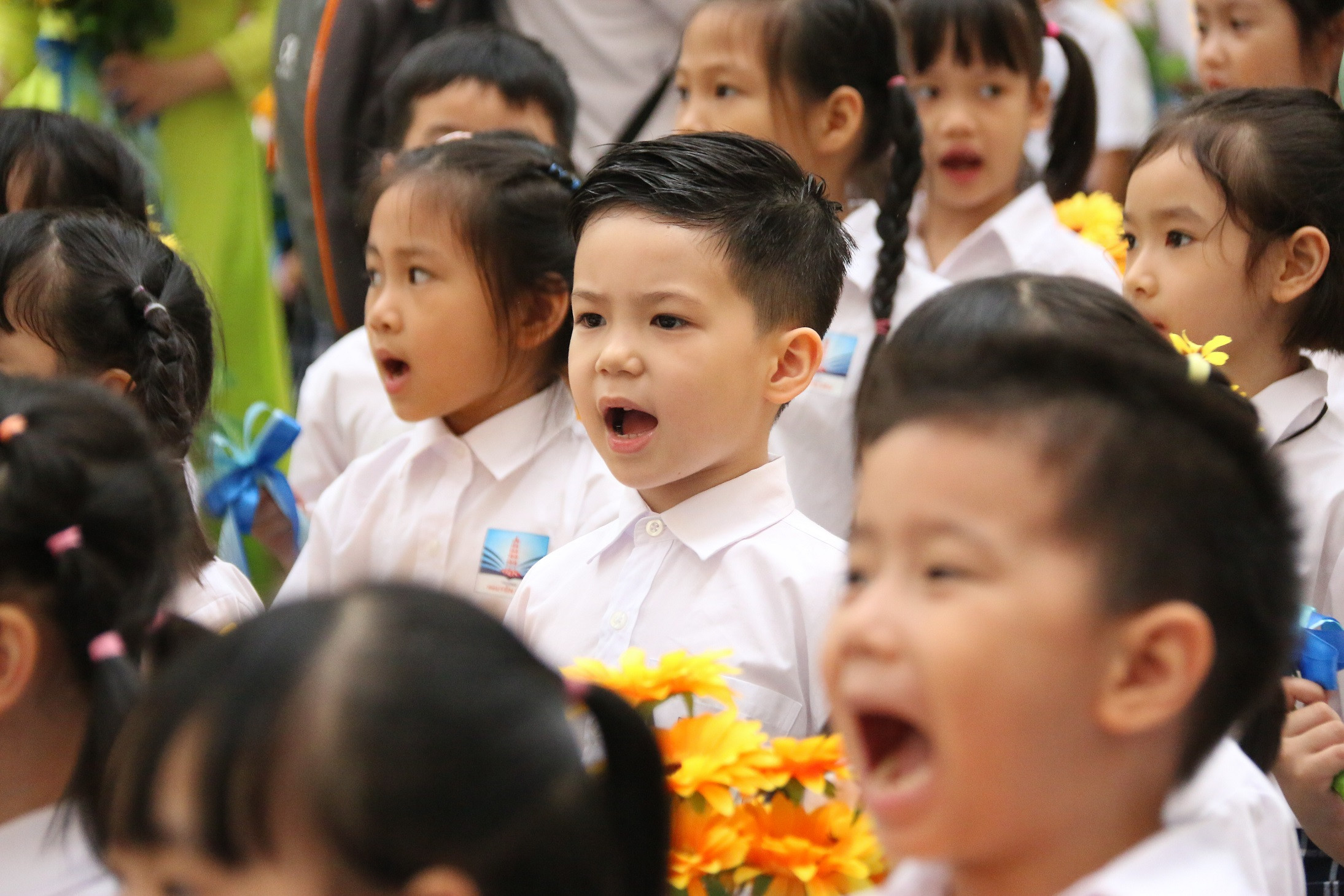 Trong không khí hân hoan ngày tựu trường, các học sinh lớp 1 được các thầy cô và các anh chị khóa trên dành tặng màn chào đón ấn tượng.