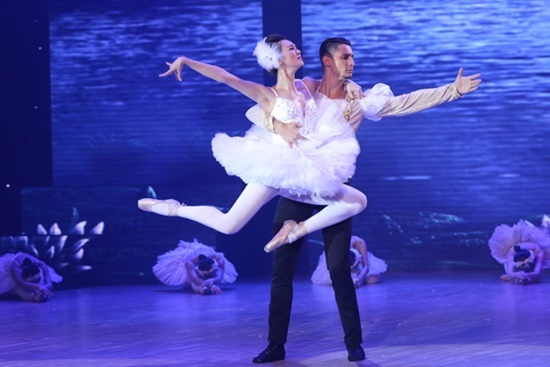 Hết văn hoá hầu đồng đậm nét tín ngưỡng Việt, Khánh My thay đổi 180 độ với hóa nàng thiên nga của vở ballet nổi tiếng 'Hồ thiên nga' trong tiết mục dự thi thứ hai. Nữ diễn viên thể hiện điệu Slow Foxtrot và Rumba khi kể mối tình giữa hoàng tử và nàng thiên nga trắng. Ở phần cuối bài thi, cô còn có màn bay lơ lửng lên không trung khiến khán giả la ó trầm trồ. |