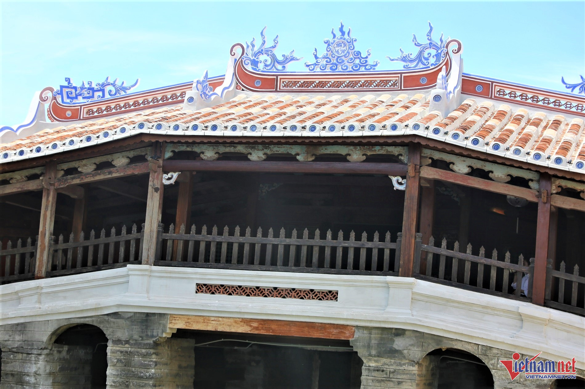 "Còn phần màu đỏ hiện nay là màu nguyên bản truyền thống của Chùa Cầu nên vẫn được giữ nguyên. Đối với di tích cổ, Hội An đều sử dụng vôi pha với bột màu tự nhiên để phủ lên, cho nên màu sắc rất dễ phai, chỉ cần qua một mùa mưa nắng thì Chùa Cầu lại phủ rêu phong và có màu thời gian như trước khi trùng tu", ông Sơn chia sẻ.
