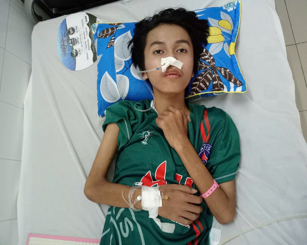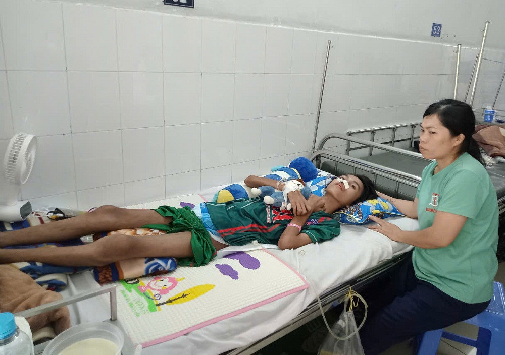 Mới đây, Tuấn phải sử dụng thuốc đặc trị với chi phí hơn 120 triệu đồng trong 5 ngày. Tuy nhiên, bệnh tình cải thiện chậm. Nằm trên giường bệnh, mắt mở vô hồn, thỉnh thoảng em lên cơn la hét, mắt trợn ngược khiến vợ chồng ông Dũng hết sức đau lòng.