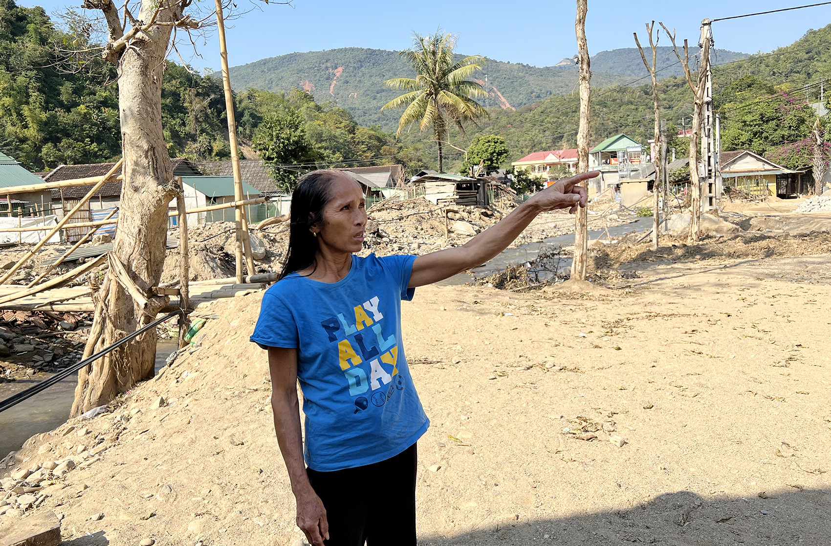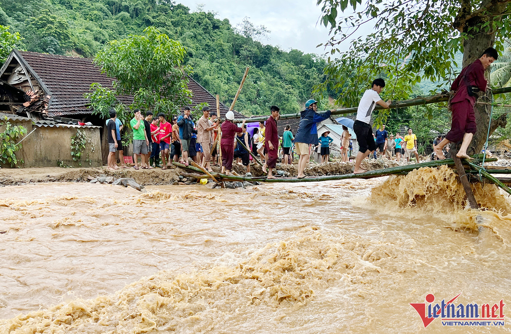 Gặp bà Vi Thị Hương (SN 1965, trú bản Hoà Sơn), bên chiếc cầu tạm bắc qua khe Huồi Giảng dùng tiếp tế nhu yếu phẩm những ngày đầu của lũ quét qua, bà cho biết, chưa bao giờ phải chứng kiến trận lũ quét kinh hoàng như thế.