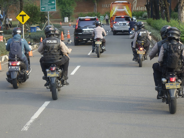 Trước khi ra sân tập chiều 12/7, các thành viên U19 Việt Nam bất ngờ khi chứng kiến lực lượng an ninh được bố trí khá đông quanh khách sạn Grand Sahid Yaya cũng như trên đường di chuyển ra sân. Đây là cũng buổi tập đầu tiên, kể từ khi đặt chân đến Jakarta, U19 Việt Nam có xe hộ tống của cảnh sát.