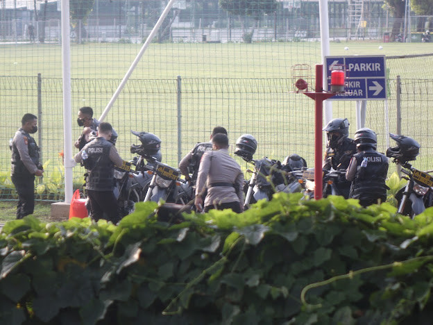 Khu vực sân tập của U19 Việt Nam được bảo vệ khá nghiêm ngặt. Trước khi U19 Việt Nam bước xuống xe để vào sân tập, lực lượng cảnh sát của Indonesia đã có mặt để đảm bảo an ninh.