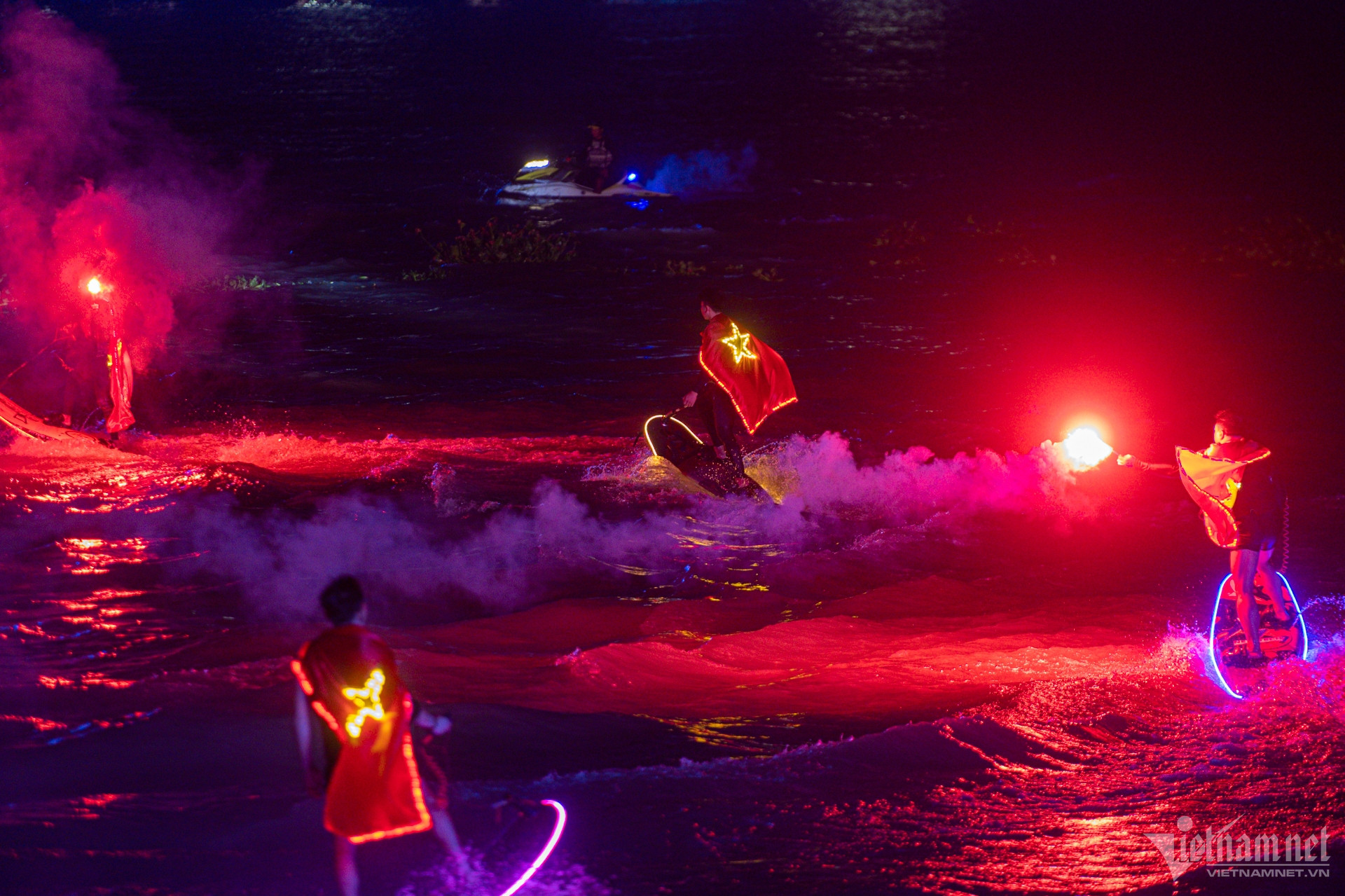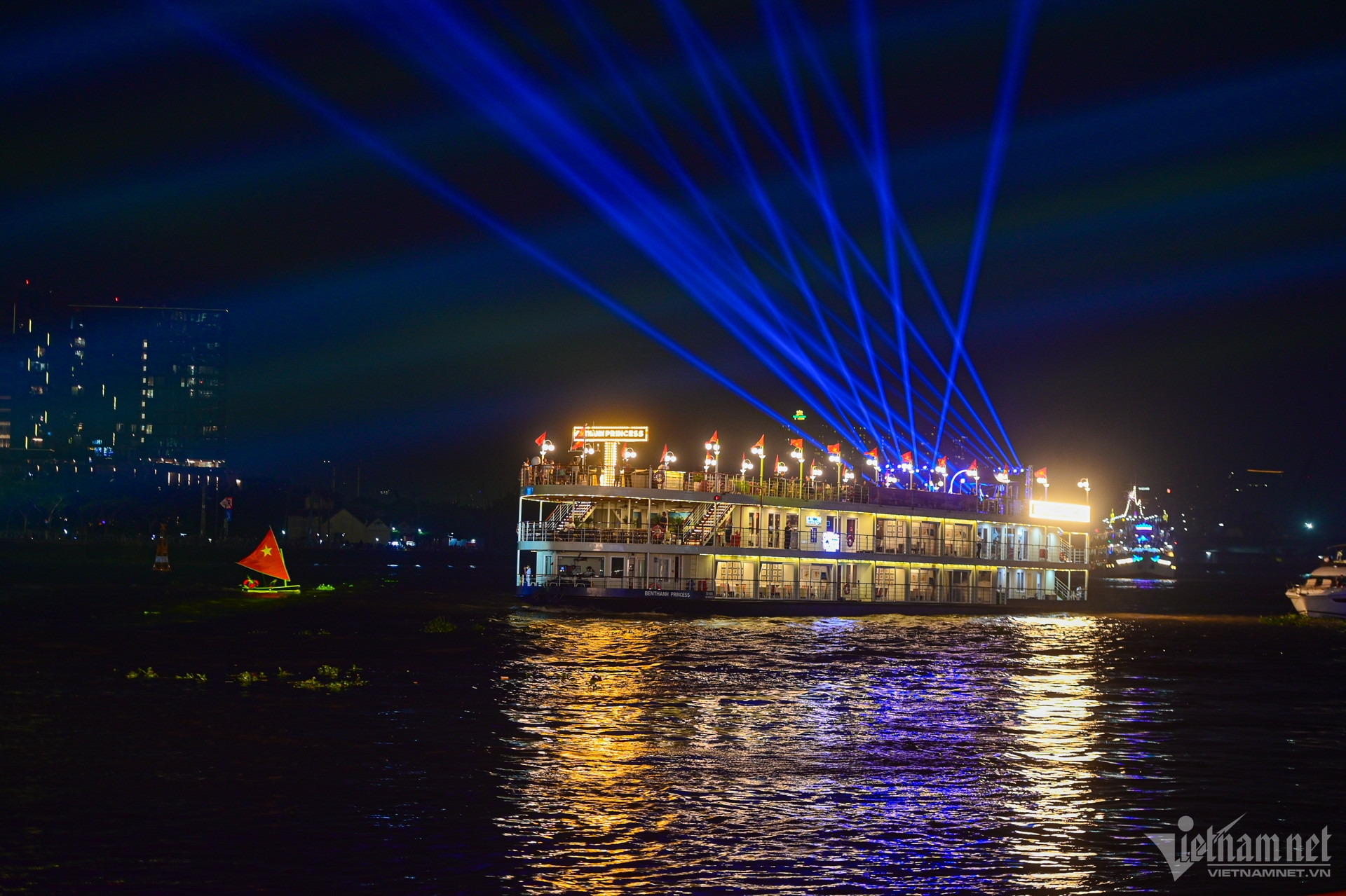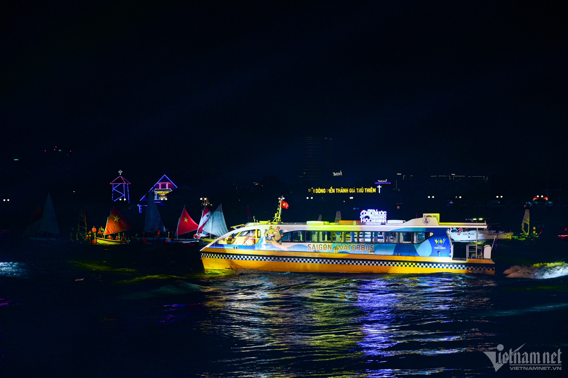 Với chủ đề "TPHCM - Lung linh dòng sông hát", 1.100 thiết bị bay không người lái đã thắp lên bầu trời những bức tranh đa sắc màu và đầy ý nghĩa, hòa cùng không khí sôi động của các hoạt động thể thao dưới nước và diễu hành tàu trên sông Sài Gòn.