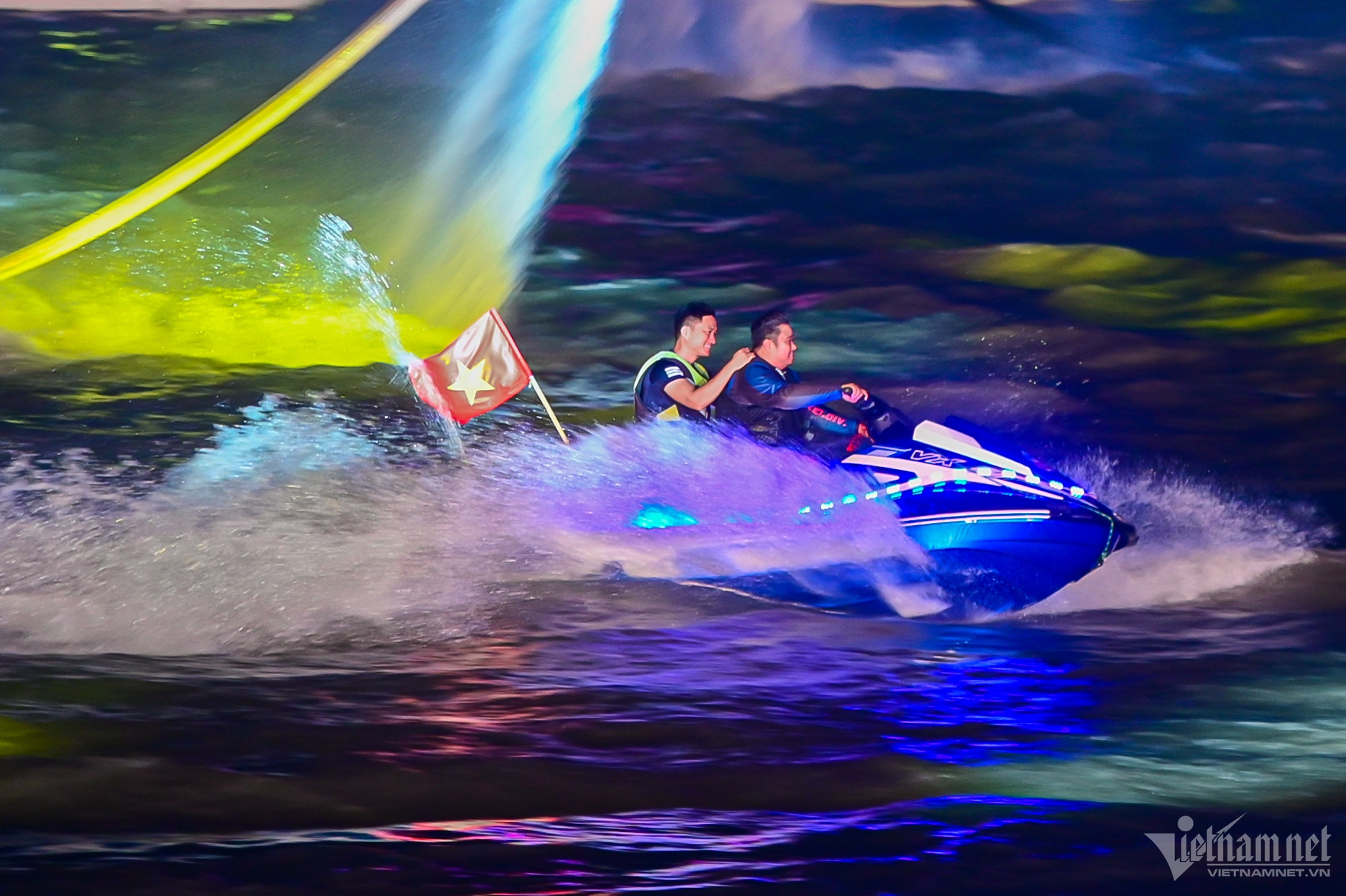Các màn trình diễn dưới nước khuấy động dòng sông Sài Gòn thu hút sự chú ý của người xem.