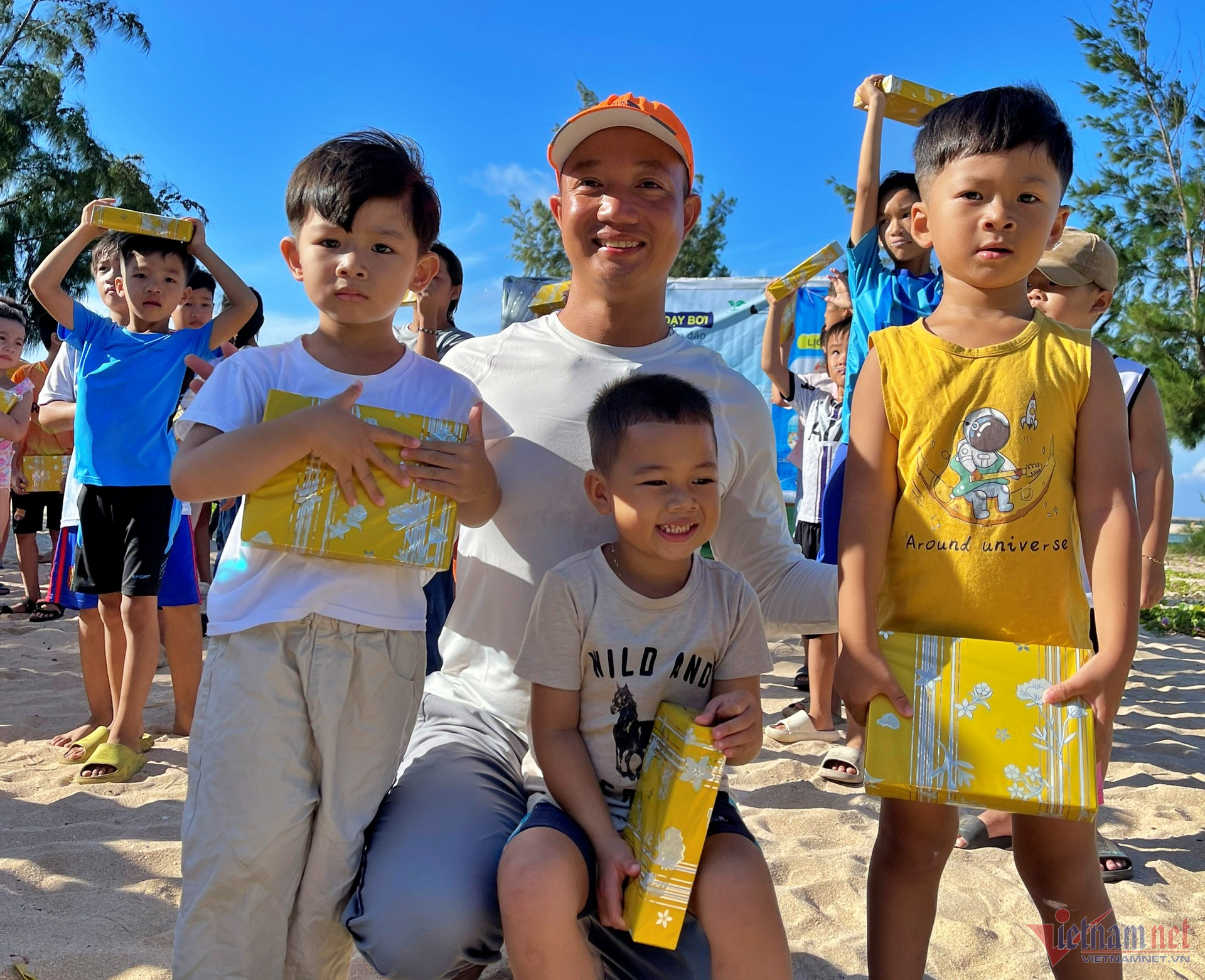 Trước khi bước vào hoạt động học bơi trên biển, các em được hướng dẫn tập thể dục buổi sáng, tham gia trò chơi dân gian, nhặt rác trên bãi biển. Ngoài ra, sự kiện còn dành tặng sách và dụng cụ học tập cho các bé đến học bơi.