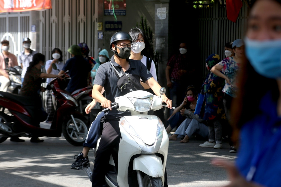 Có mặt tại điểm trường THPT Khương Đình, chị Hồng cho biết, năm nay, tỉ lệ chọi vào các trường công lập tại Hà Nội vô cùng gắt gao, do đó không chỉ riêng con mà bản thân chị cũng cảm thấy bất an, lo lắng. Không thể hỗ trợ con về mặt kiến thức, vợ chồng chị chỉ có thể động viên, chăm lo cho con về mặt sức khoẻ, đồng thời sắp xếp công việc để đồng hành cùng con trong suốt hơn 2 ngày thi.