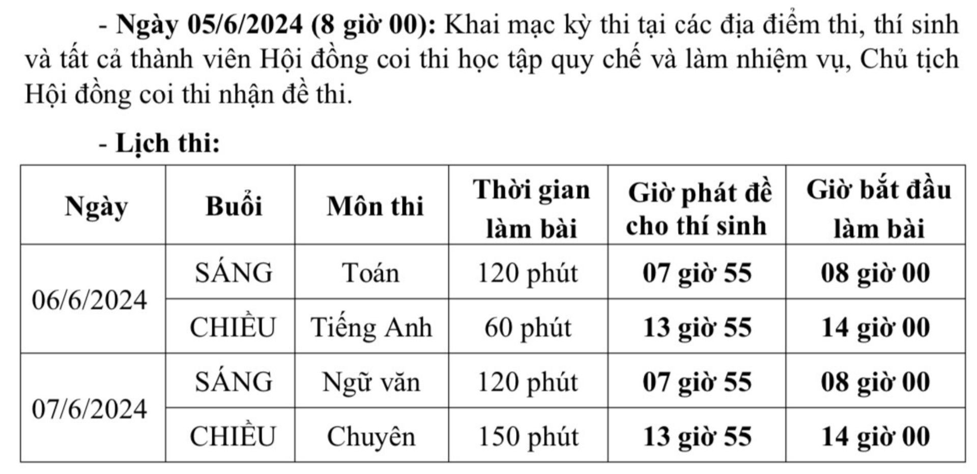 Ngoài ra, lực lượng y tế, công an, chính quyền địa phương cũng phối hợp cử lực lượng tham gia hỗ trợ công tác tổ chức thi đảm bảo an toàn tuyệt đối. Đặc biệt, đề thi được bàn giao cho chủ tịch hội đồng thi có trách nhiệm bảo quản nghiêm ngặt trong tủ sắt và có camera giám sát 24/24 giờ theo đúng quy định.