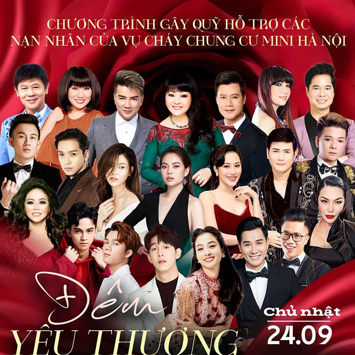 Đàm Vĩnh Hưng cho biết anh và ê-kíp cùng vận động tổ chức chương trình Đêm yêu thương diễn ra tối 24/9 tại một phòng trà ở TP.HCM với mục đích thiện nguyện và đấu giá vật phẩm gây quỹ ủng hộ nạn nhân vụ cháy chung cư mini tại Khương Hạ, Hà Nội mới đây.
