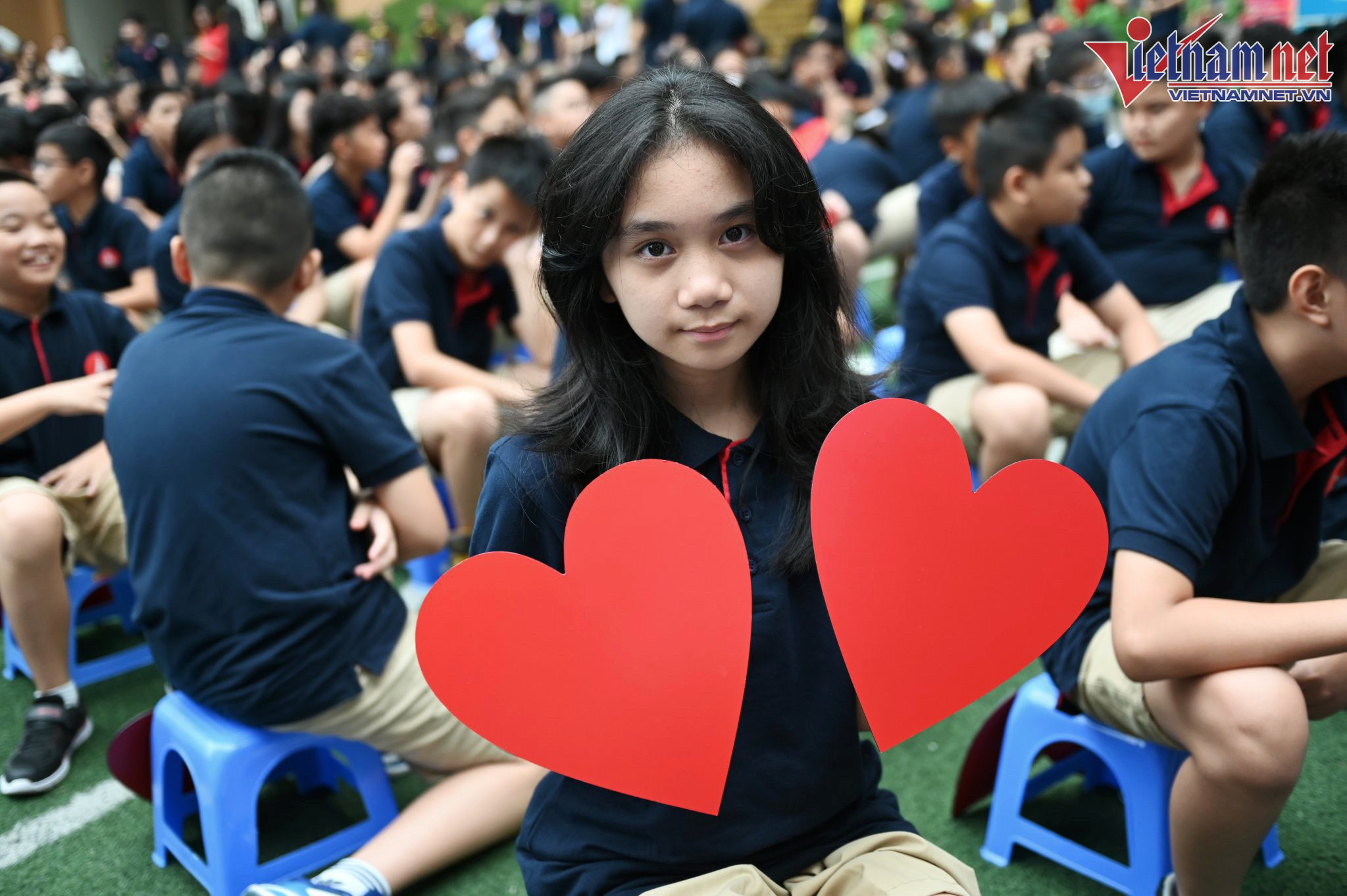 "Năm ngoái chúng em đón khai giảng trực tuyến nên năm nay, được tham dự trở lại lễ khai giảng ở trường, cảm xúc trong em rất khác lạ và có chút bồi hồi" - Hân chia sẻ.