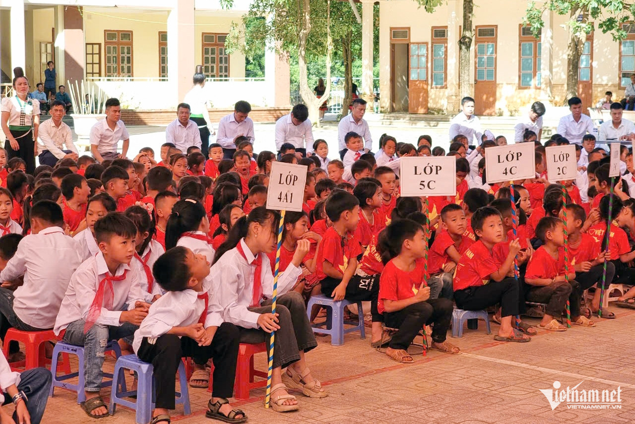 Tại cụm trường xã Tà Mung, Than Uyên, Lai Châu, hơn 1.000 học sinh hoà trong không khí vui tươi của ngày tựu trường.