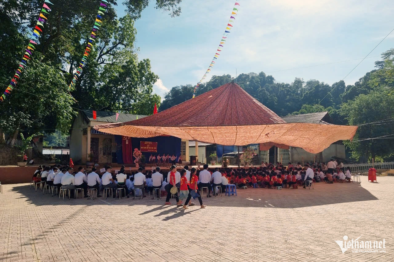 Lễ khai giảng tại cụm trường xã Tà Mung sáng 5/9. Ảnh: Lê Anh Dũng