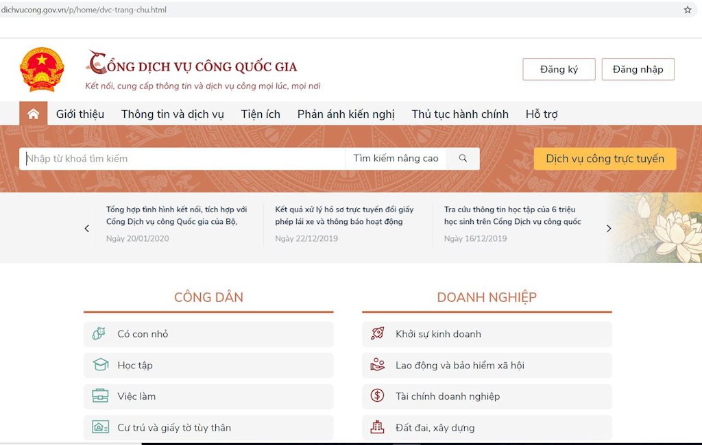 Với mong muốn tạo một cầu nối điện tử “thực chất, liên tục, hiệu quả” giữa Chính phủ với người dân, doanh nghiệp trong cả nước, ngày 9/12/2019, Thủ tướng Chính phủ đã khai trương Cổng Dịch vụ công quốc gia tại địa chỉ duy nhất www.dichvucong.gov.vn. Đây là đầu mối cung cấp thông tin, hỗ trợ việc thực hiện dịch vụ công trực tuyến và tiếp nhận các phản ánh, kiến nghị liên quan đến thủ tục hành chính trong tất cả các ngành, lĩnh vực, tại tất cả các địa phương.