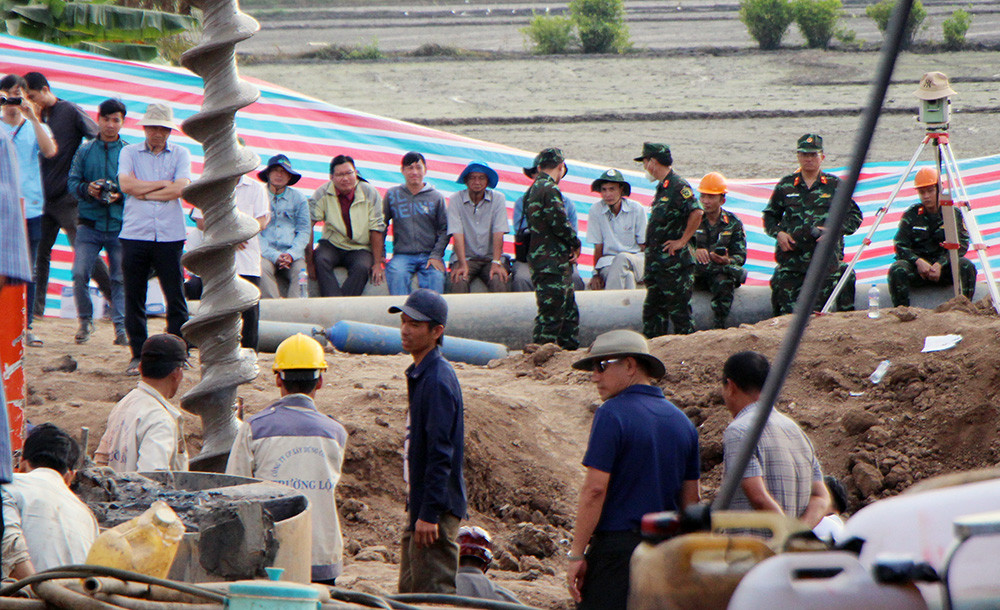 Khoảng 16h chiều 2/1, Bí thư Tỉnh ủy Đồng Tháp Lê Quốc Phong đến hiện trường, chỉ đạo công tác cứu hộ bé trai 10 tuổi rơi xuống ống trụ bê tông sâu 35m ở công trình cầu Rọc Sen (xã Phú Lợi, huyện Thanh Bình).