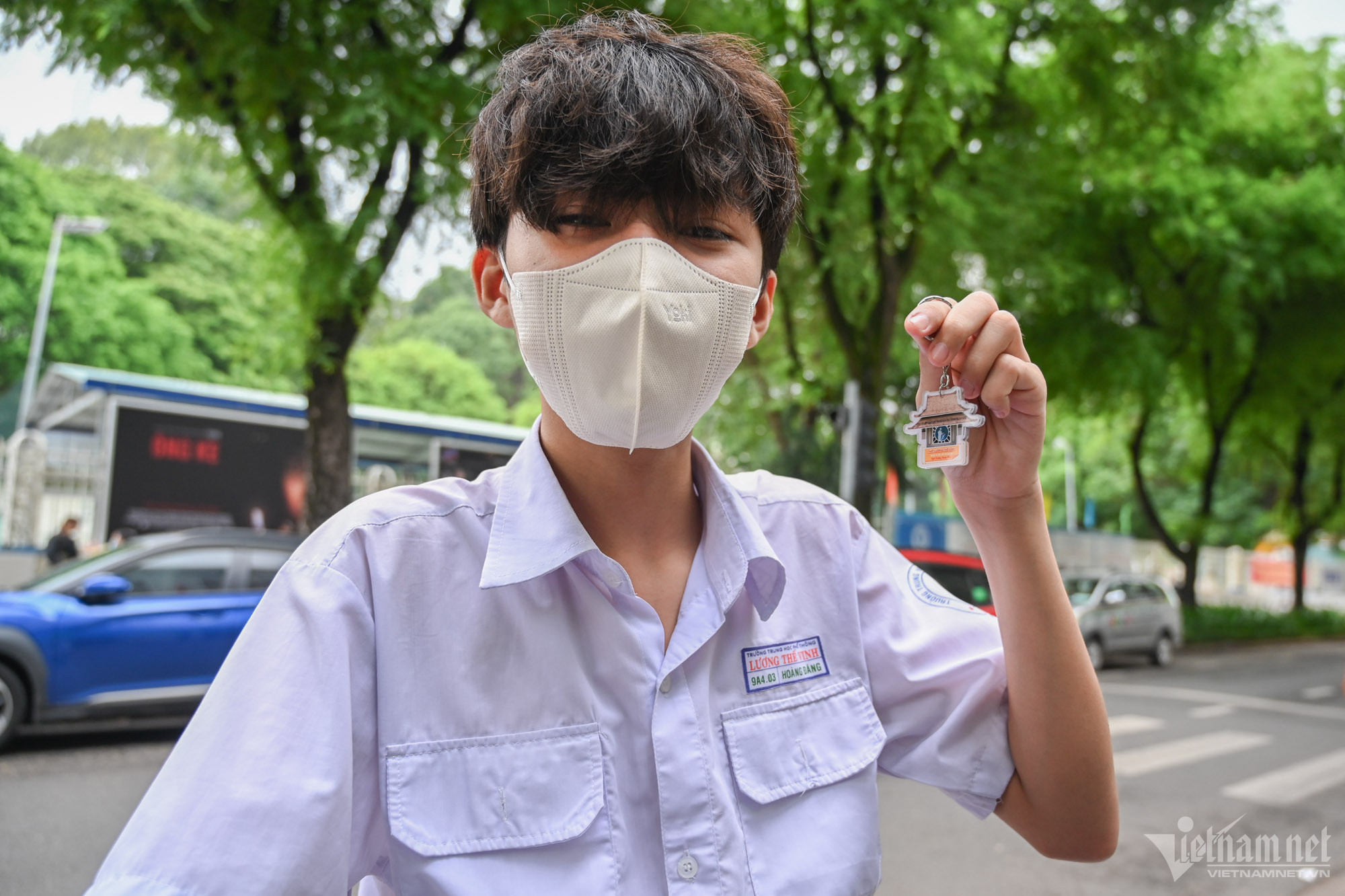 "Đây là chiếc móc chìa khóa may mắn em được thầy cô tặng. Em đặt nguyện vọng đầu tiên được đỗ vào Trường THPT Hùng Vương. Hy vọng em có một kỳ thi thật tốt", em Hoàng Đăng (Trường THCS&THPT Lương Thế Vinh) nói.