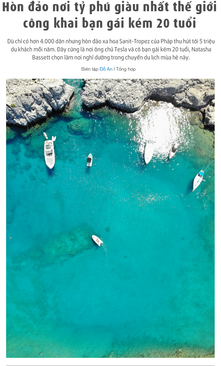 Ngày 30/5 vừa qua, buổi hẹn hò của tỷ phú Elon Musk và nữ diễn viên Natasha Bassett đã được cánh săn ảnh chụp lại trên hòn đảo thiên đường của Pháp.