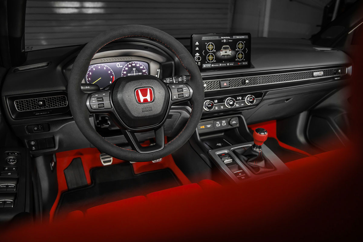 Bên trong, Honda Civic Type R vẫn giữ thiết kế của mẫu Civic hiện hành, nhưng có ghế ngồi thể thao, sử dụng hộp số sàn 6 cấp và kết hợp 2 tông màu đỏ/đen nổi bật.