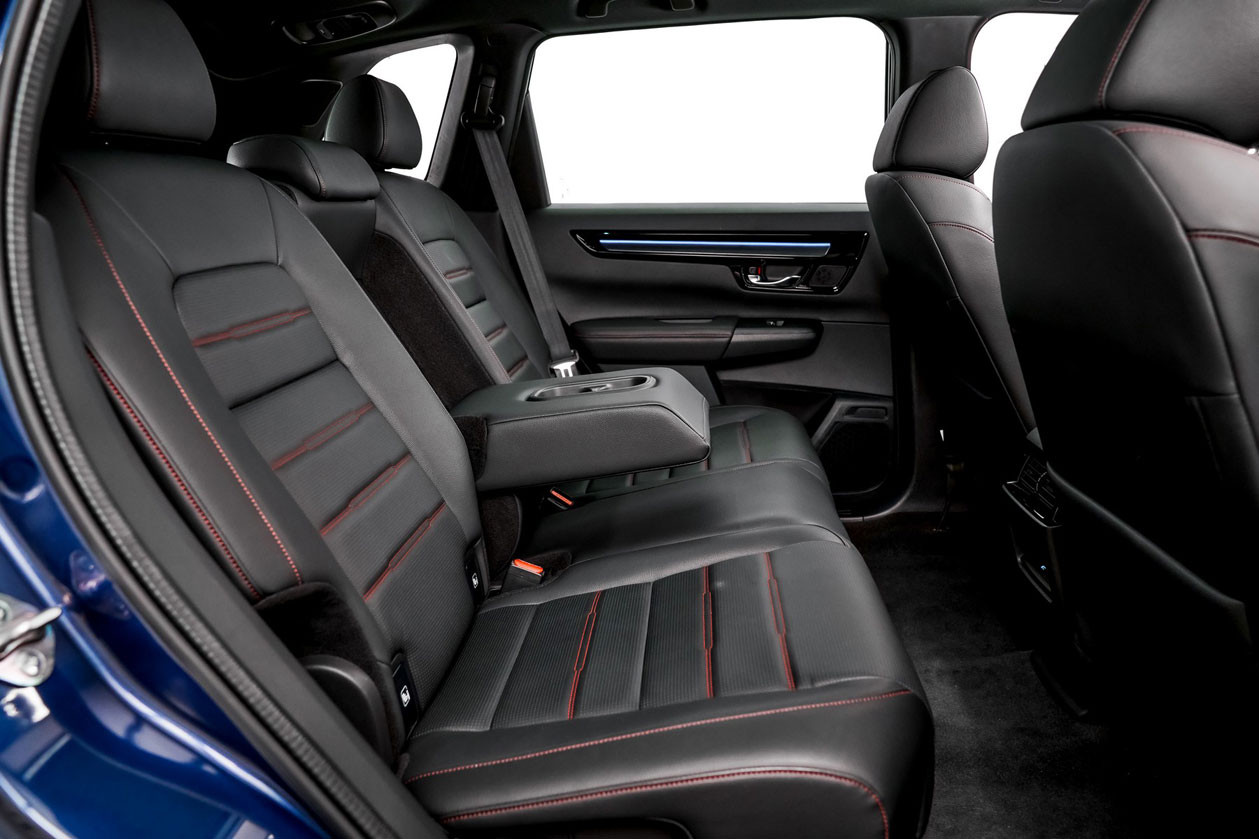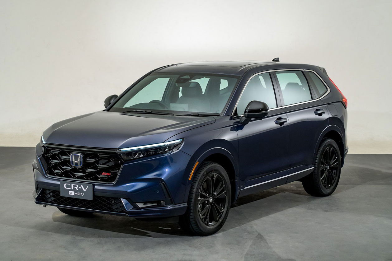 Ở thế hệ mới, Honda CR-V có thêm phiên bản e:HEV RS 4WD nổi bật hơn với huy hiệu RS trên thân xe, sử dụng bộ mâm hợp kim 19 inch sơn tông màu tối, ốp vòm bánh xe và cản trước/sau sơn cùng màu với thân xe.