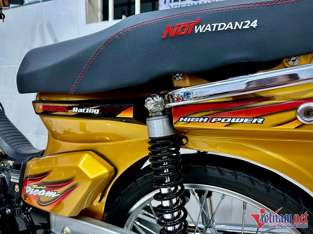 Theo anh Dũng, chiếc Honda Dream Thái này vốn sở hữu màu nâu nay được lên dàn sơn vàng candy nhìn khá là bắt mắt, đồng thời độ nhẹ lại thành dáng Super Dream (Dream Việt).
