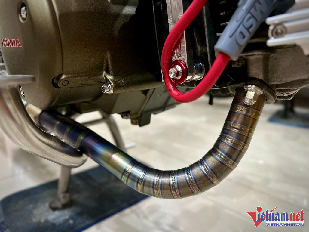 Dàn ốc được thay mới bằng ốc Salaya. Càng sau, hộp xích, bàn để chân cùng chân phanh, cần số, đều được thay đồ mới hoàn toàn bằng chất liệu inox 304.