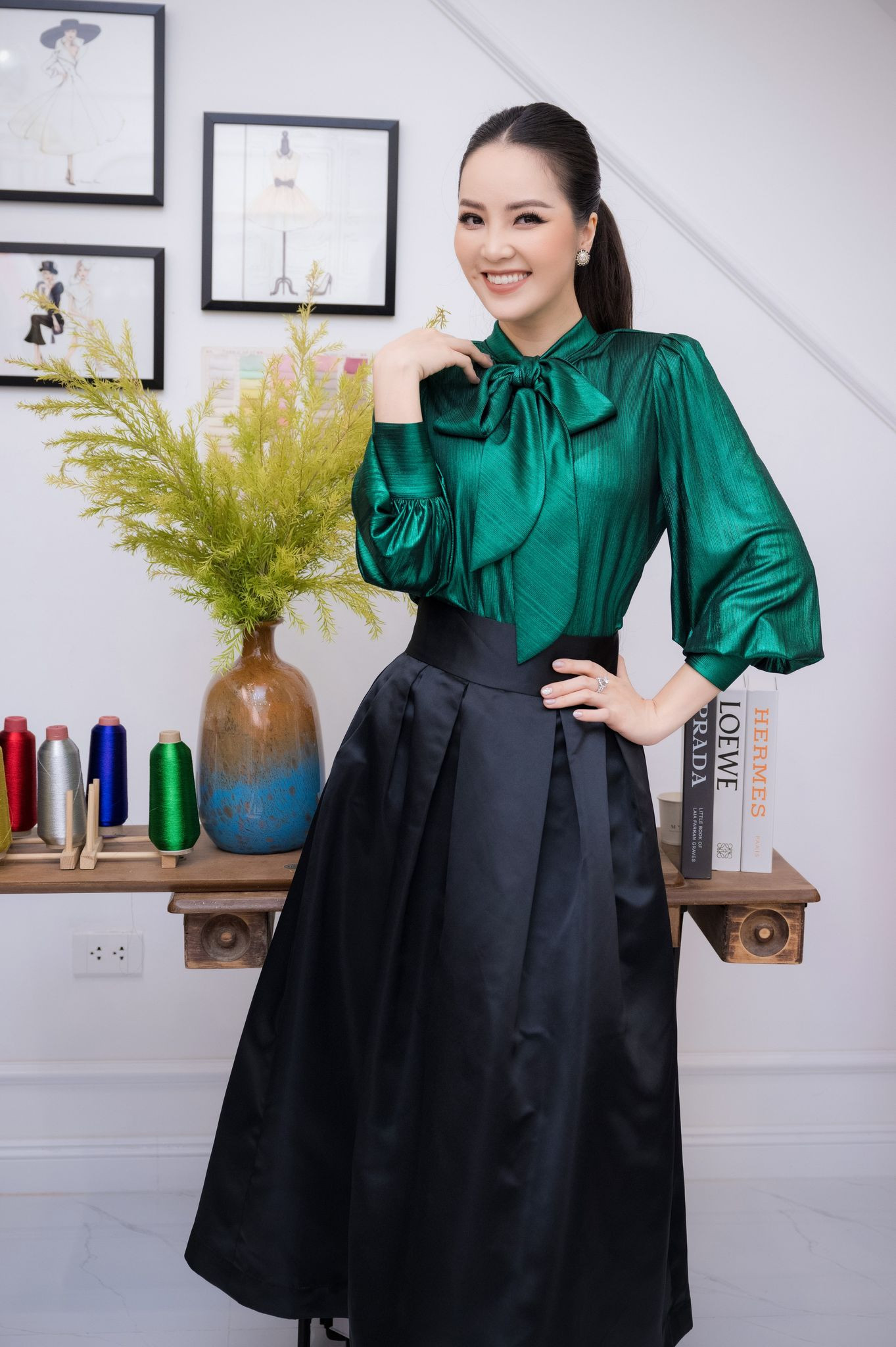 Đầu tiên, cô chọn cây trắng, mix vest cách điệu với chân váy xếp ly dáng dài. Ở set thứ hai, cô phối áo sơ mi tông xanh ngọc đậm với chân váy xoè cổ điển. Dù trang phục kín đáo nhưng nhờ chi tiết nơ điệu đà ở cổ áo, Thuỵ Vân vẫn toát lên sự nổi bật và không hề thua kém về style so với những người đẹp khác trong sự kiện. Ở set thứ 3, bà mẹ một con lại yêu thích mẫu áo trench coat xanh đang là xu hướng và hợp với tiết trời mùa thu mát mẻ của Hà Nội.