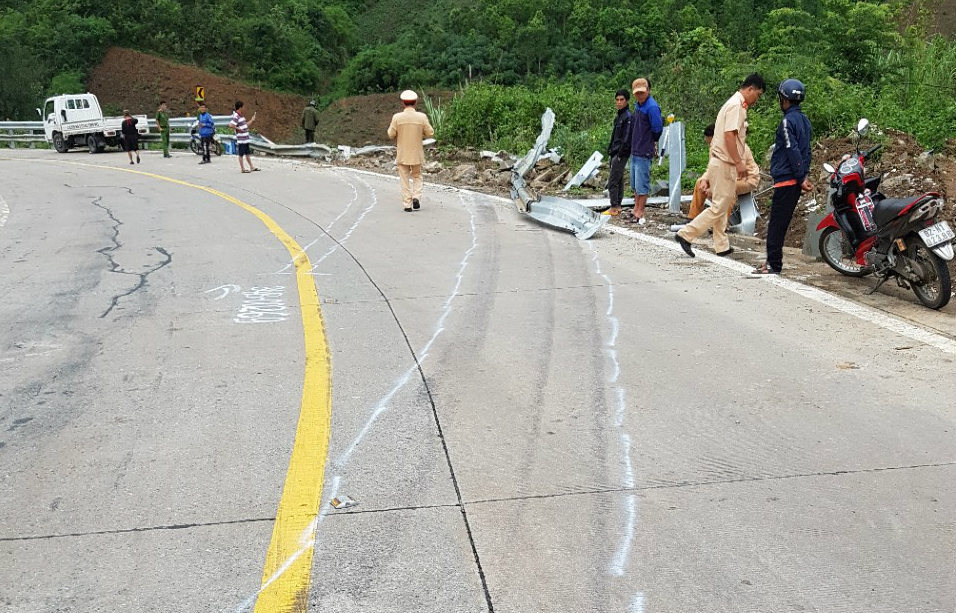 | Xe khách đâm đứt hàng chục mét hộ lan trên đèo Lò Xo trước khi lao xuống vực |