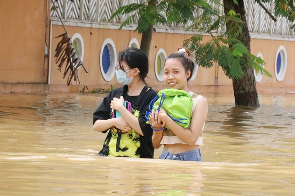 Lãnh đạo Sở GD-ĐT tỉnh Thừa Thiên Huế yêu cầu các trường căn cứ tình hình mưa lũ để thông báo cho học sinh đi học trở lại, theo phương châm "bảo đảm an toàn tính mạng cho học sinh".