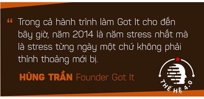 Trong cả hành trình làm Got It cho đến bây giờ, năm 2014 là năm stress nhất mà là stress từng ngày một chứ không phải thỉnh thoảng mới bị. Từng ngày một thật đấy.
