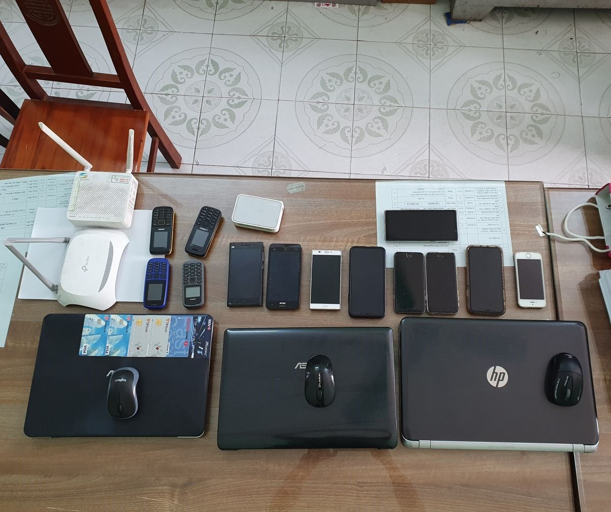 Cơ quan cảnh sát điều tra đã thu giữ 13 chiếc điện thoại di động; 3 bộ máy tính; phong tỏa 8 tài khoản ngân hàng.... cùng nhiều thiết bị kết nối mạng Internet và hàng nghìn trang tài liệu có liên quan.