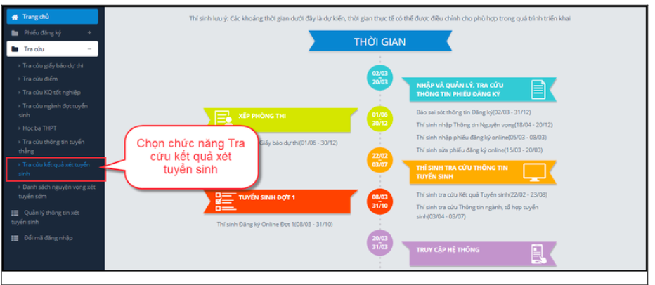 Thí sinh tra cứu kết quả xét tuyển sinh từ menu Tra cứu.