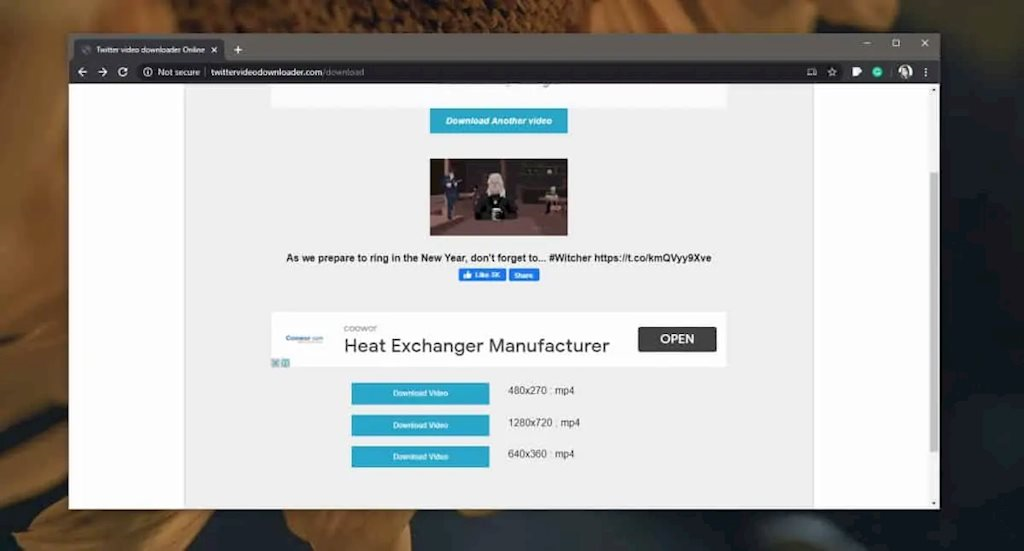 Video trên Twitter thường khá ngắn nên quá trình tải của bạn có lẽ chỉ mất vài giây hoặc cùng lắm vài phút là xong. Ứng dụng web này còn cho phép bạn chọn chất lượng của video tải về. Hãy chọn mức chất lượng video mà bạn muốn rồi bấm nút "Download video" tương ứng, một cửa sổ mới sẽ nhảy ra.