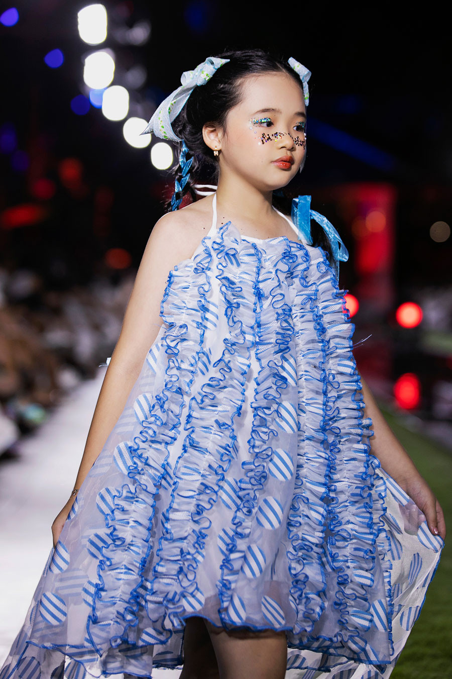 Ở bộ sưu tập thứ hai, các mẫu nhí và mẫu trẻ chuyên nghiệp chinh phục khán giả bằng những bước đi nhẹ nhàng trong không gian lãng mạn, đầy chất thơ với bộ sưu tập “Khi giấc mơ về” của NTK Tommy Tường Lê. Mẫu teen Nguyễn Minh Anh diễn mở màn và bé Thỏ - con gái Xuân Lan giữ vai trò vedette.