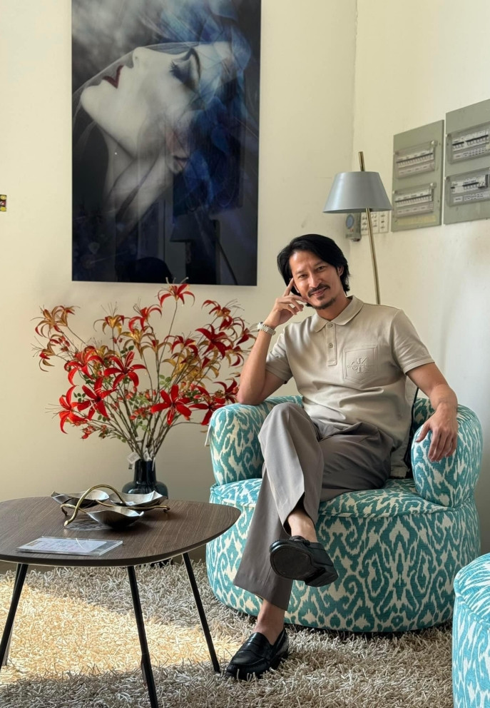 - Một đồng nghiệp nhận xét ước gì ở tuổi 43 được như Huy Khánh luôn toát ra vẻ ngoài đào hoa, phong độ, luôn vây quanh bởi các bạn diễn nữ xinh đẹp, anh nói gì với nhận xét này?