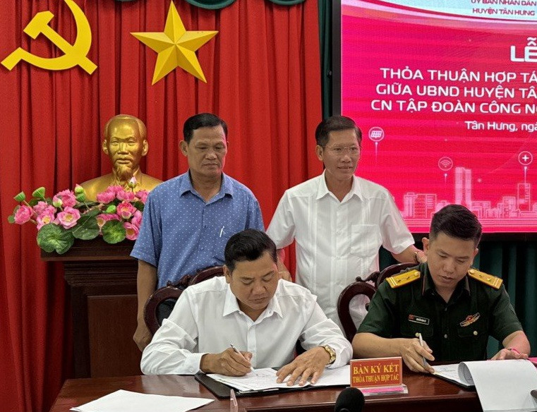 Lãnh đạo huyện Tân Hưng và Viettel Long An ký kết thỏa thuận hợp tác chuyển đổi số.