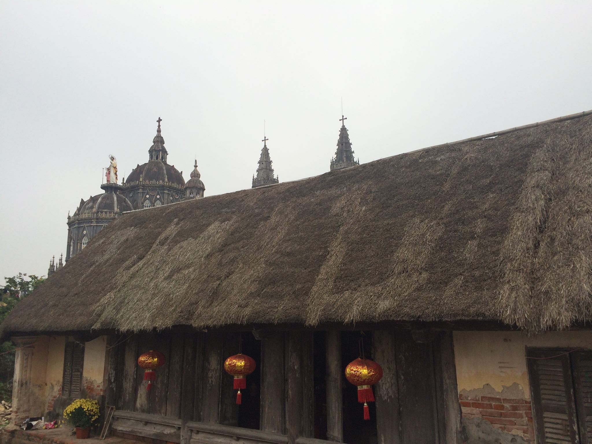 | Ngôi nhà trước khi được tu sửa với mái lợp cói, gồm 3 gian theo lối nhà truyền thống Bắc Bộ. |