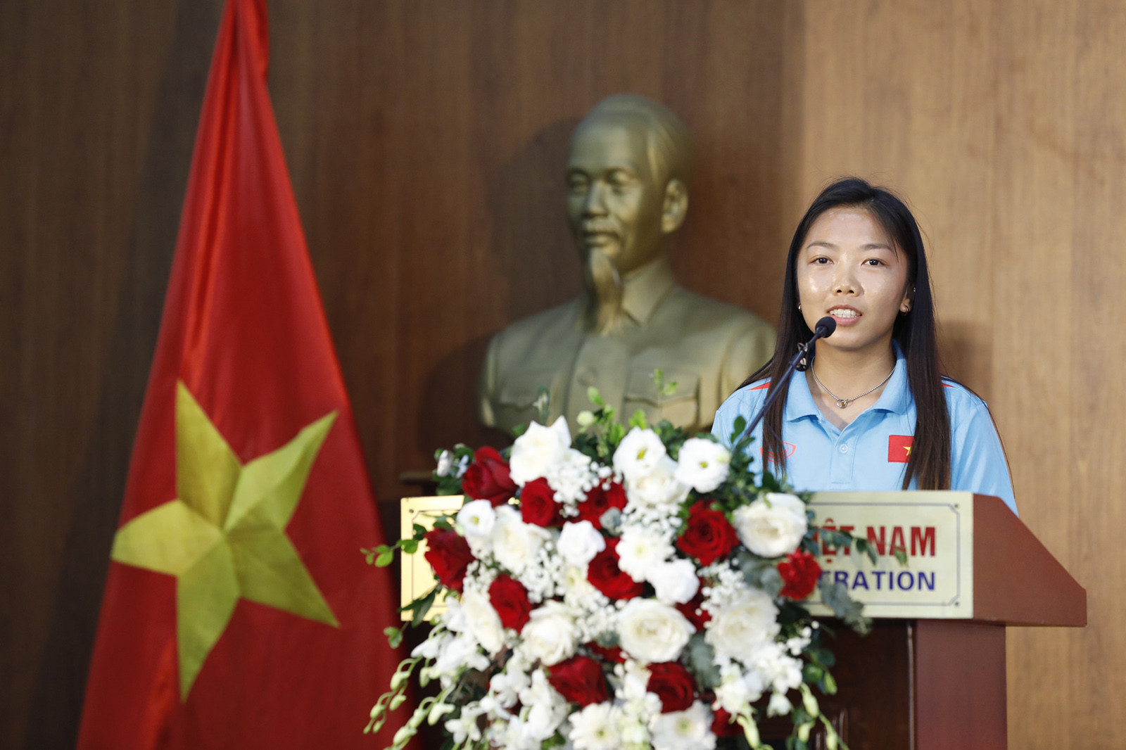 Phát biểu tại buổi lễ xuất quân, Chủ tịch VFF Trần Quốc Tuấn cho biết: "Đây là thành tích có ý nghĩa lịch sử. Các nữ tuyển thủ Việt Nam vượt qua vô vàn khó khăn trong quá trình chuẩn bị, thi đấu. Có lúc gần như cả đội mắc Covid-19 nhưng đã vượt qua để giành chiến thắng.