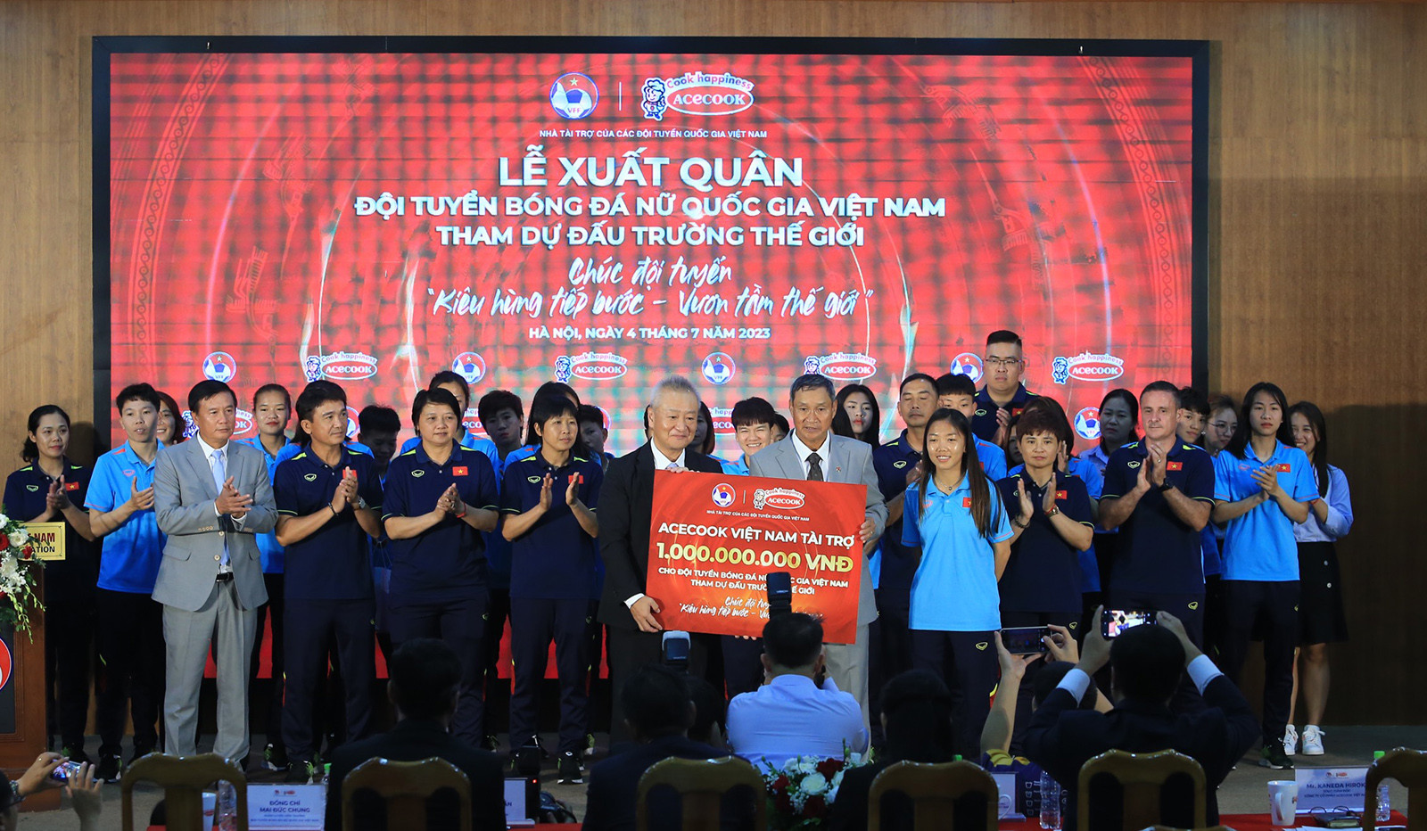 Đạt thành tích xuất sắc ở các giải đấu của tuyển bóng đá nữ Việt Nam là niềm tự hào dân tộc. Việc bước ra thế giới là thành công của bóng đá nữ Việt Nam, tiếp thêm sức mạnh cho người dân Việt Nam. Nhân dịp này, Acecook Việt Nam tài trợ 1 tỷ đồng với tuyển nữ Việt Nam”.