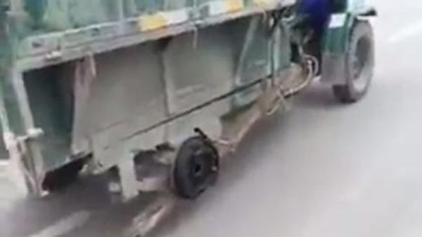 Tài xế gây sốc vì giải pháp cho xe tải bị hỏng một bánh
