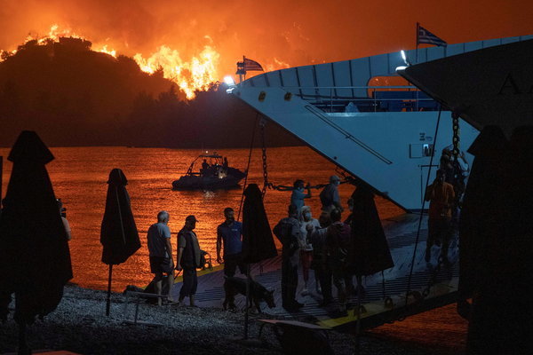 Những cánh rừng ở đảo Evia, Hy Lạp đang chìm trong biển lửa. Người dân và khách du lịch được giải cứu khi cháy rừng vượt ngoài kiểm soát.