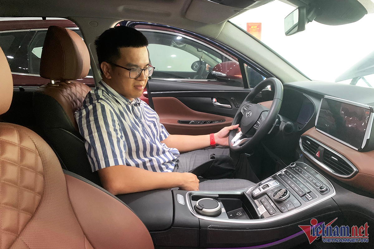 Anh Nguyễn Phong (Bắc Ninh), người vừa làm thủ tục mua lại chiếc 'xế hộp' nói trên cho biết, bản thân thích và tìm mua dòng xe SantaFe từ lâu và đến nay mới quyết định "chốt" tại showroom từ lời giới thiệu của một người quen.